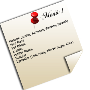 - İçecekler (Limonata, Meyve Suyu Kola)
