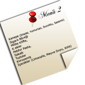 - Kanepe(Sosisli, Yumurtalı, Sucuklu, Salamlı)